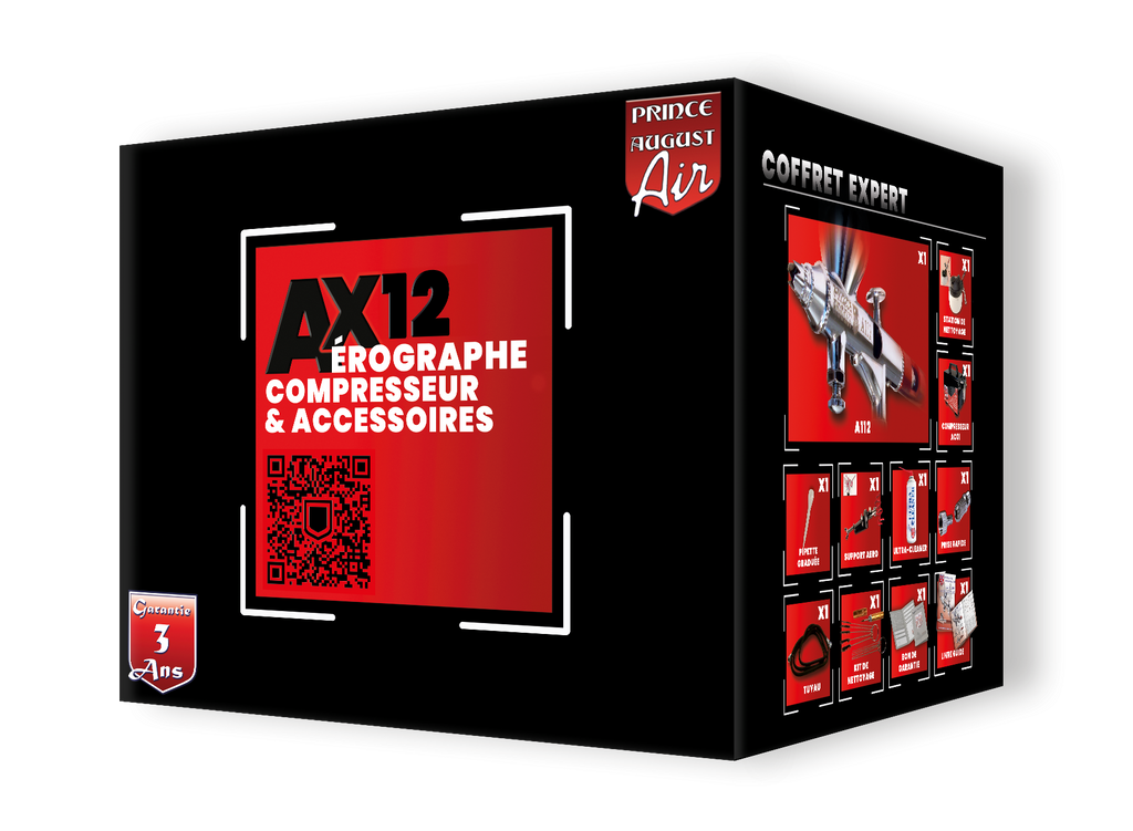 Le coffret Prince-August Expert AX12 comprend l’Aérographe A112 Haute Définition.