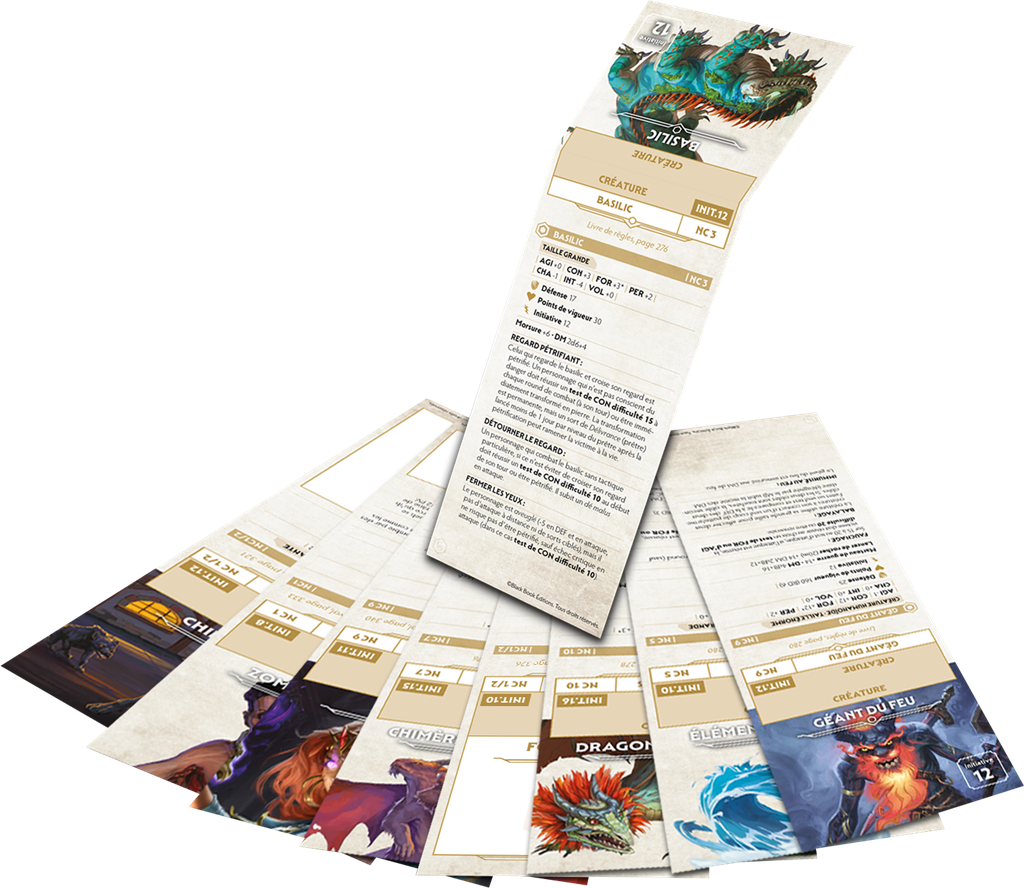 Ce paquet de mémentos pour Chroniques Oubliées Fantasy contient 39 PNJ et monstres majeurs présents dans le livre de base.