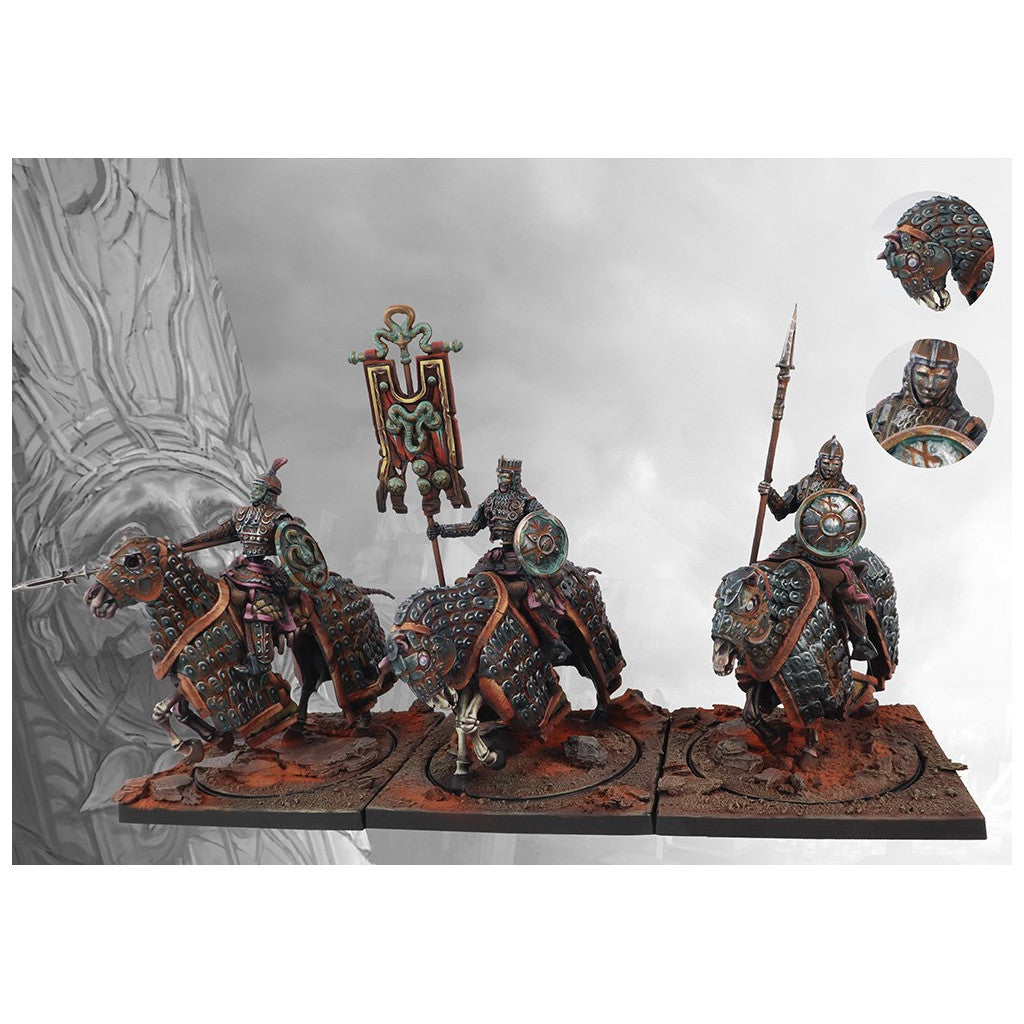 En armure de la tête aux pieds, les Kataphraktoi étaient les précurseurs de l'idéal noble du chevalier. Élevés dans la mort, ces cavaliers deviennent une force terrifiante sur le champ de bataille, leur efficacité étant renforcée par le fait que ni le cheval ni le cavalier ne connaissent la peur ou la douleur, ce qui leur permet de percuter les formations ennemies avec une férocité qu'aucun mortel ne peut égaler.