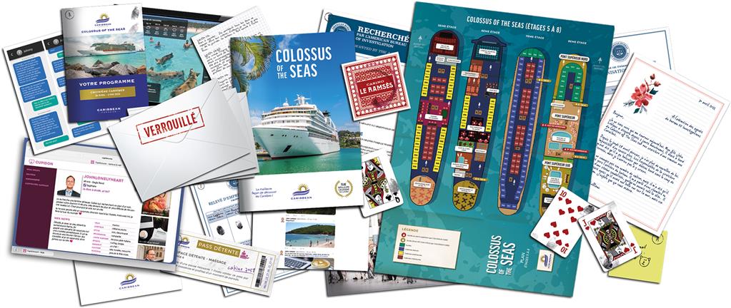 Le dossier criminel contient des témoignages, des brochures de la croisière, un plan du bateau, et une multitude d’autres documents… En résolvant des énigmes, vous déverrouillerez 4 enveloppes contenant des preuves supplémentaires.