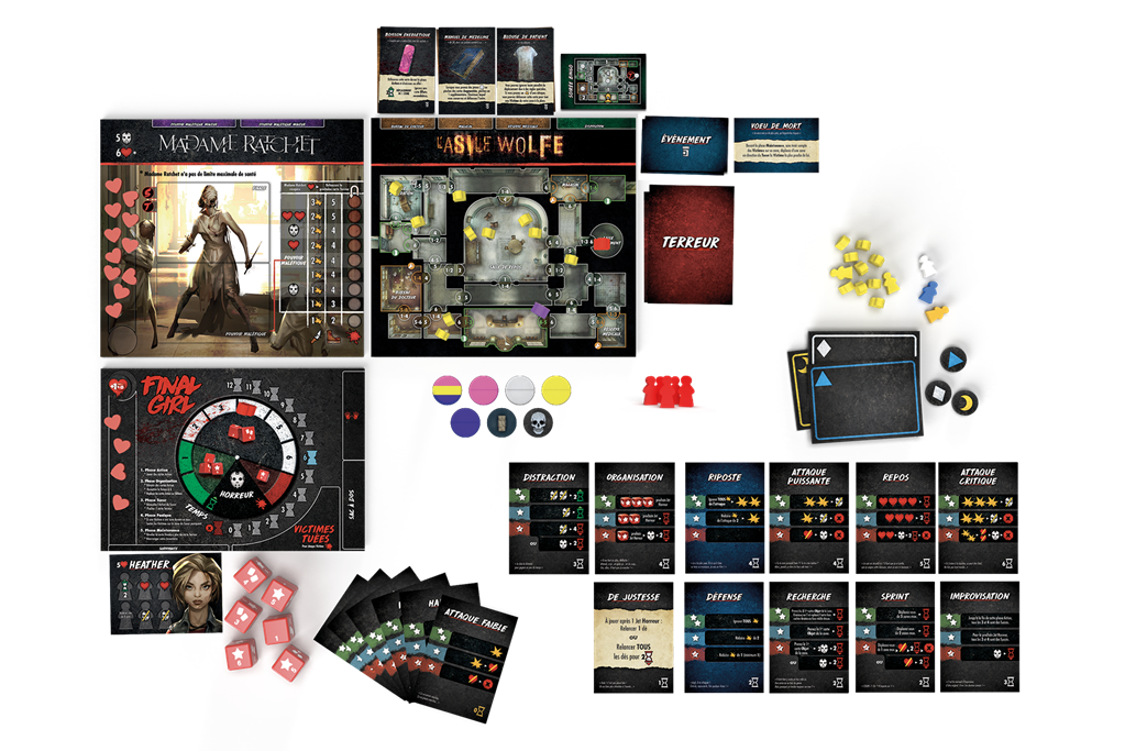 Vous avez toujours rêvé de jouer dans votre propre film d’horreur ? C’est votre chance ! Dans Final Girl, Vous incarnez l’héroïne de l’histoire. Ce jeu solo donne vie aux référentiels des classiques du genre, grâce à un système novateur et quasi inépuisable : les Longs Métrages.