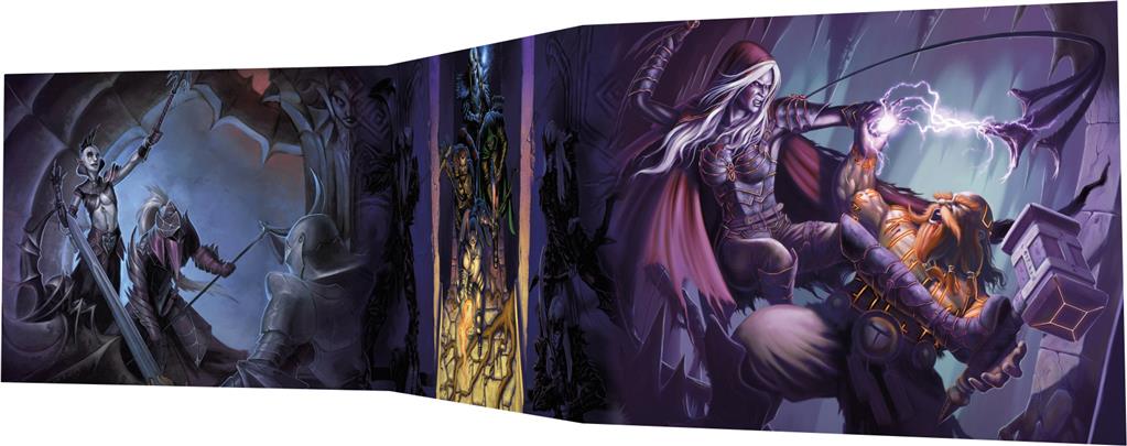 Exclusivité française, l’écran du MJ de L’Ascension des drows se présente sous un format paysage en trois volets.