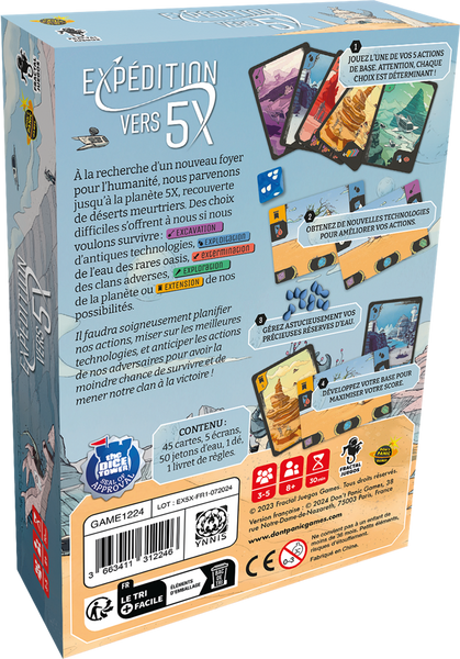 À chacun des 15 tours qui composent une partie, découvrez une nouvelle carte Technologie, puis chaque joueur choisit une de ses cartes Action. Celles-ci sont résolues dans l’ordre de leur initiative. L’eXcavation vous permet de participer à une enchère à poings fermés pour récupérer une carte Technologie. L’eXploitation vous fait gagner des jetons Eau, la « monnaie » de cette planète. L’eXtermination permet de volet de l’eau aux concurrents. L’eXploiration vous donne de l’eau et vous permettra de choisir votre action en décalé. Enfin, l’eXtension est la manière de récupérer toutes vos cartes Action jouées précédemment.