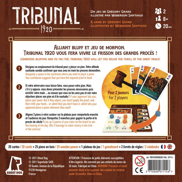 Août 1920. Deux célèbres avocats new-yorkais se livrent un combat acharné lors d’un retentissant procès. Soutenez votre plaidoirie avec de solides preuves et bluffez quand il le faut pour remporter la victoire dans le plus grand tribunal du monde !