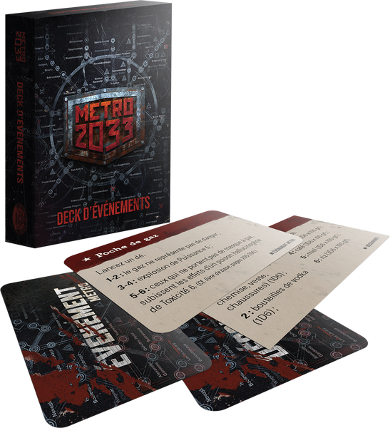 Métro 2033 est le jeu de rôles inspiré de la série de romans à succès de Dmitry Glukhovsky. Ce deck contient 67 cartes qui proposent des dangers, des rencontres, des surprises et des événements pour ponctuer le voyage de vos stalkers.