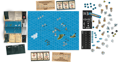 1 Plateau de jeu modulable en 8 parties. 840x720mm épaisseur 2mm, 4 pions de porte avions, 4 pions recto-verso de destroyers US ou Japonais, 47 pions d’avions japonais, 47 pions d’avions américains, 91 pions de jeux divers, 2 plateau de score, 1 plateau de tour, 1 plateau d’initiative, 4 aides de jeu, 1 livret de règle (8 pages A4), 1 livret de 10 scénarios (24 pages A4).