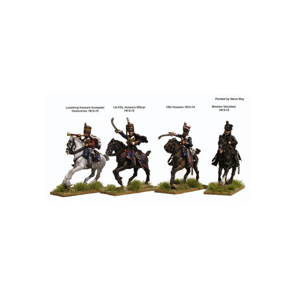 En plus qu'en tant que hussards britanniques, ces figurines peuvent également être utilisées en tant que Kings German Legion et Hanoverian Hussars. Il existe cinq variantes de coiffure pour chaque hussard, ce qui permet de les utiliser depuis le début de la guerre péninsulaire jusqu'à la campagne de Waterloo incluse. Toutes les figurines (à l'exception du trompette) ont deux variantes de bras, épée épaulée et à la charge. Elles sont représentées en tenue de campagne, avec les pelisses séparées qui peuvent être enlevées si elles sont représentées dans des climats chauds.