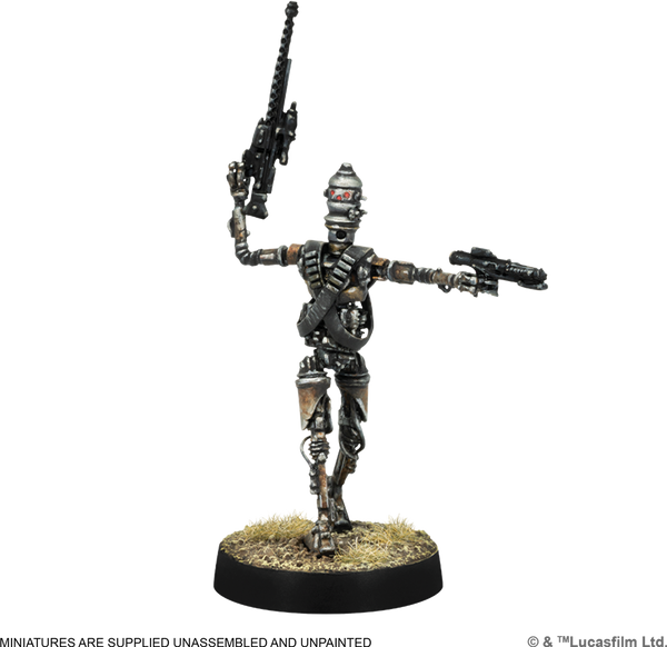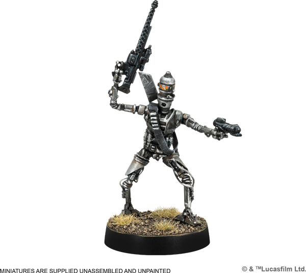 Les droïdes assassins accomplissent leurs missions de manière implacable, employant sans scrupules la force brute. Vous pouvez intégrer IG-11 et IG-88 en tant qu’agents dans des armées de l’Empire Galactique ou de l’Alliance Rebelle : ces mercenaires élimineront toujours leurs cibles. Grâce à leurs compétences létales, ces droïdes assassins n’hésiteront pas à abattre tous ceux qui se dressent entre eux et leur proie.