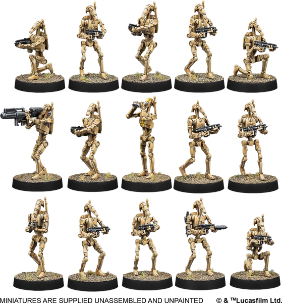 Les Droïdes de Combat B1, peu solides et peu performants au combat, compensent leurs défauts par leur facilité de production. L’Alliance Séparatiste peut ainsi mettre à profit leur supériorité numérique pour intervenir rapidement et efficacement partout dans la galaxie. Cette extension pour Star Wars™: Legion contient 1 Chef d’unité Droïde de Combat B1, 12 Droïdes de Combat B1 et 2 Droïdes de Combat B1 avec arme lourde afin de constituer 1 unité de Troupiers dynamique. Pour cette réédition du pack SWL49, les figurines ont été retravaillées pour une meilleure précision et un assemblage facilité. Cette extension inclut toutes les cartes nécessaires pour jouer immédiatement : cartes d’unité, d’amélioration et pions de jeu.