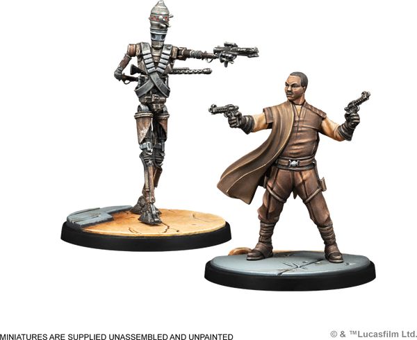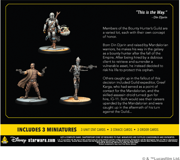 Cette boîte d’escouade contient 3 nouveaux personnages : le Mandalorien (accompagné de Grogu dans son berceau), en unité principale, Greef Karga en unité secondaire, et IG-11 en unité de soutien. Trois personnages emblématiques de la série TV à succès Le Mandalorien.