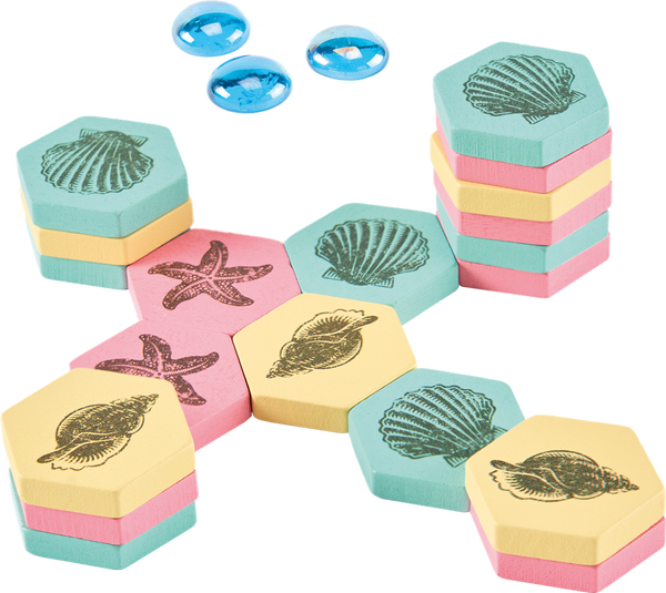 L'anticipation sera la clé de ce duel rapide et subtil. Vous serez immanquablement séduits par la qualité du matériel reflétant la beauté de l'univers marin avec des dessins épurés et des couleurs pastel. Les éléments ont aussi été réfléchis dans un souci d'écologie et de praticité : tuiles en bois, pierres en verre, un sac tissu pour ranger les éléments et une boîte à clapet aimanté compacte pour tout emporter.